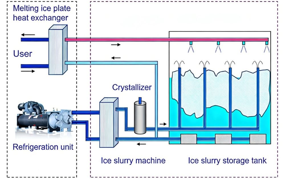 Dynamic ice storage can provide a constant low-temperature cold water of 0 ~ 2 ℃, and the melting speed of ice can fluctuate greatly with the cold load! It can be widely used in large-scale regional cooling, peak-shaving electricity storage, pharmaceutical cold chain, vegetable and fruit cold chain, concrete dam pouring, chemical process cooling, and other industrial fields.