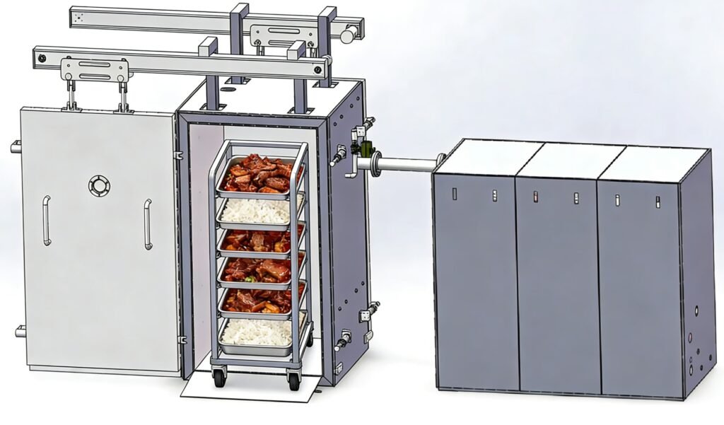 Vacuum cooler can not only achieve uniform cooling of vegetables, but also quickly cool high-temperature cooked food! The preservation method is 5 to 10 times faster than traditional methods, and its vacuum cooling method can avoid cell frostbite, simultaneously inhibit microbial activity, keep leafy vegetables and flowers upright and fresh, and keep the color, aroma and taste of high-temperature cooked food unchanged.