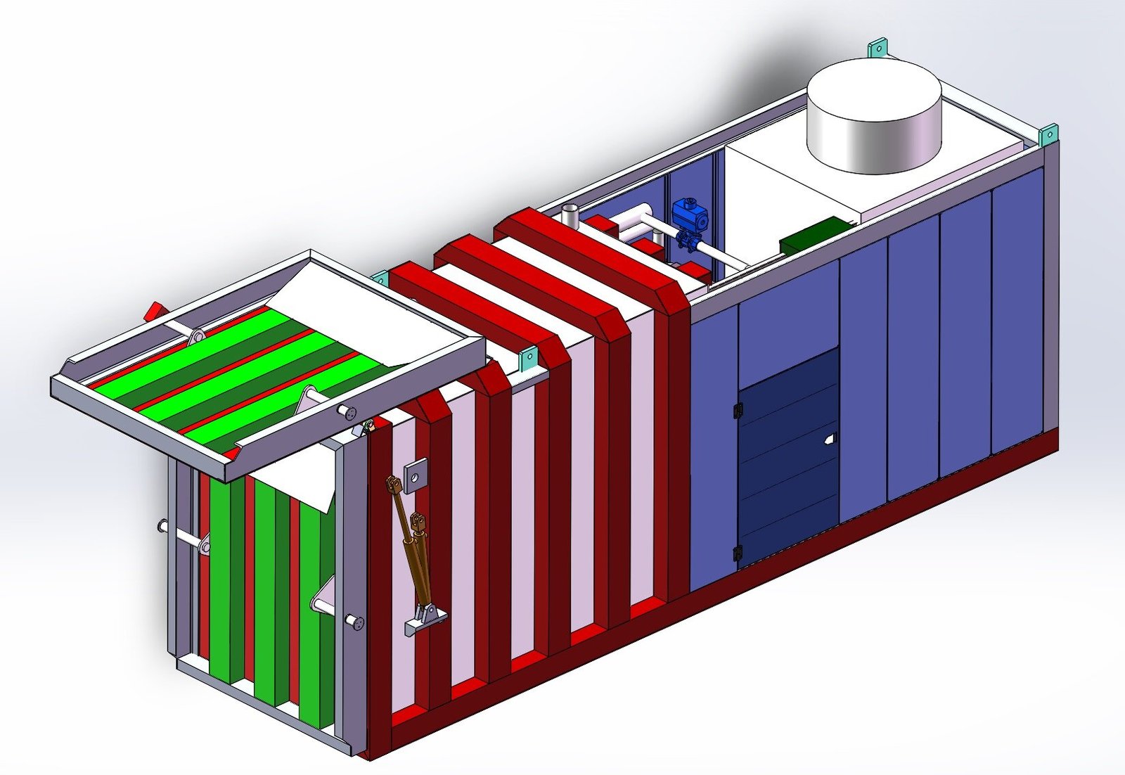 It is welded with carbon steel, and the structural frame is integrally welded with carbon steel. The pre-cooler door adopts a hydraulic flap door, as shown in the figure below: