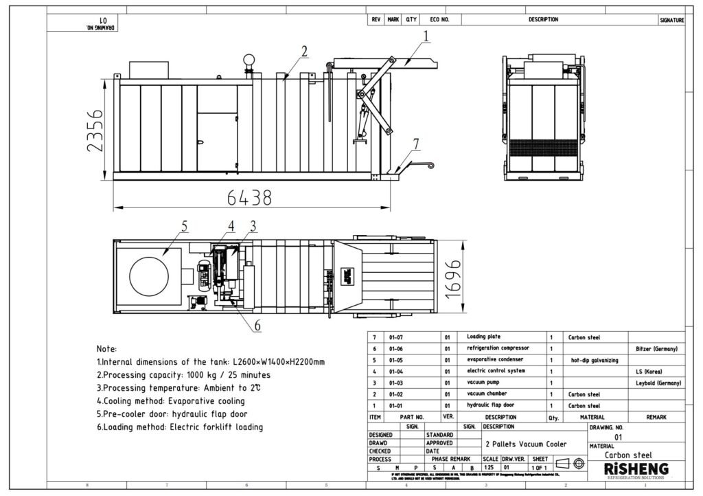3. Pre-cooling capacity per batch: 1000 kg