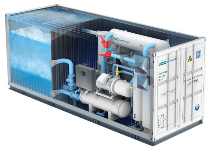 Compared with indirect ice slurry systems using plate heat exchangers, this technology achieves direct heat exchange between water and refrigerant, resulting in significantly higher efficiency