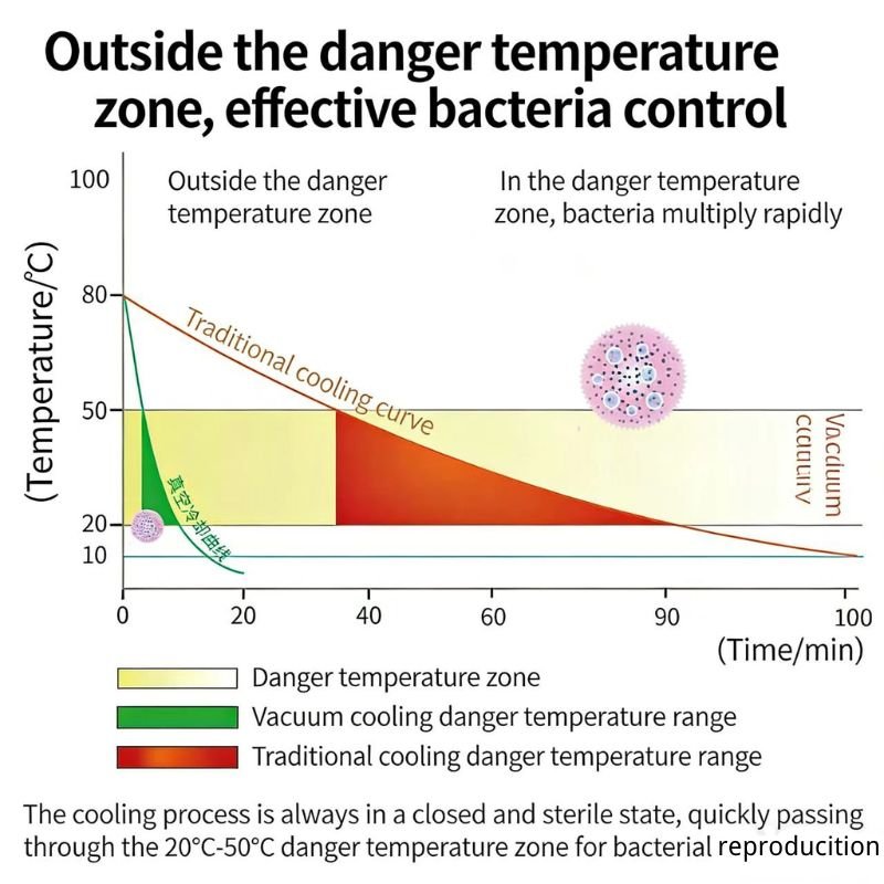 If customers have specific requirements regarding cooling time, single-batch processing capacity, the type of food to be cooled, door type (e.g., manual door, sliding door), or electrical parameters (e.g., 50Hz/60Hz) for vacuum rapid cooling, we can provide customized solutions. Feel free to contact us for inquiries and discussions at any time